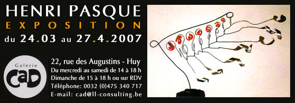 - Galerie CAD 2009, 24 avril au 30 mai Peintures et sculptures avec les artistes André Pirotte(p), Henri Caps(s), Henri Pasque(s)